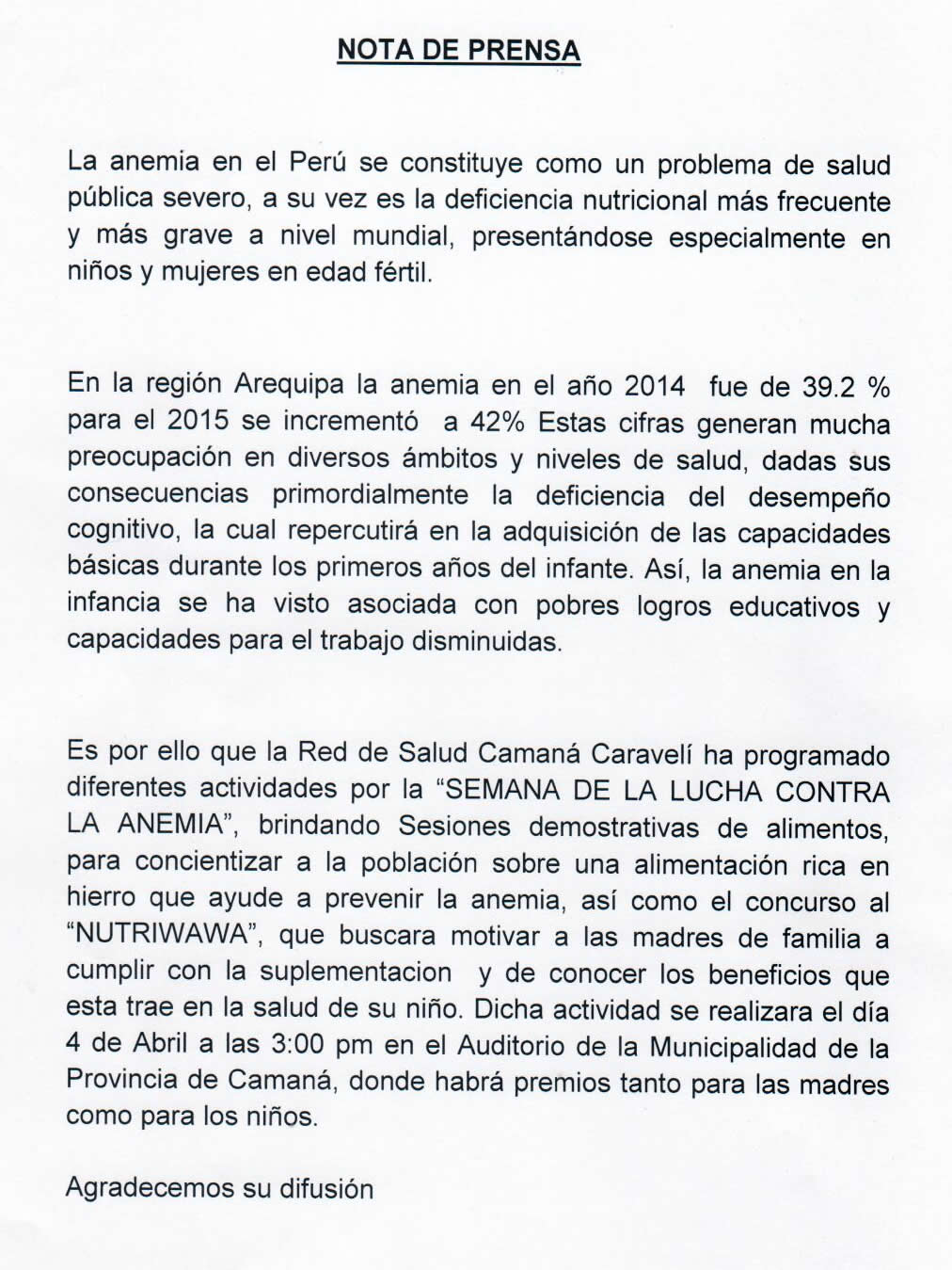 SEMANA DE LA LUCHA CONTRA LA ANEMIA