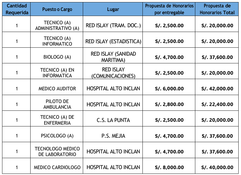 Invitación Pública 76-2026: Proceso de Contratación de Técnicos Administrativos y Personal de Salud bajo la Modalidad de Locación de Servicios para la Atención Integral a la Población – RED DE SALUD ISLAY – HOSPITAL ALTO INCLAN – C.S. LA PUNTA – P.S. MEJIA.