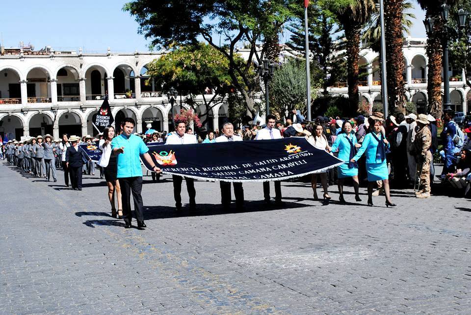 La Red de Salud Camaná Caravelí, con su Director Ejecutivo Dr. Ricardo Ruiz Rojas y el Director del Hospital Camaná Dr. Jose Antonio Llamosas Ampuero y el Equipo de Gestión asi como las micoredes San Jose, La Pampa, San Gregorio y Ocoña participaron en el DESFILE CIVICO ESCOLAR POR CXCVII ANIVERSARIO DE LA PROCLAMACION DE LA INDEPENDENCIA DEL PERU. ¡Felices Fiestas Patrias!