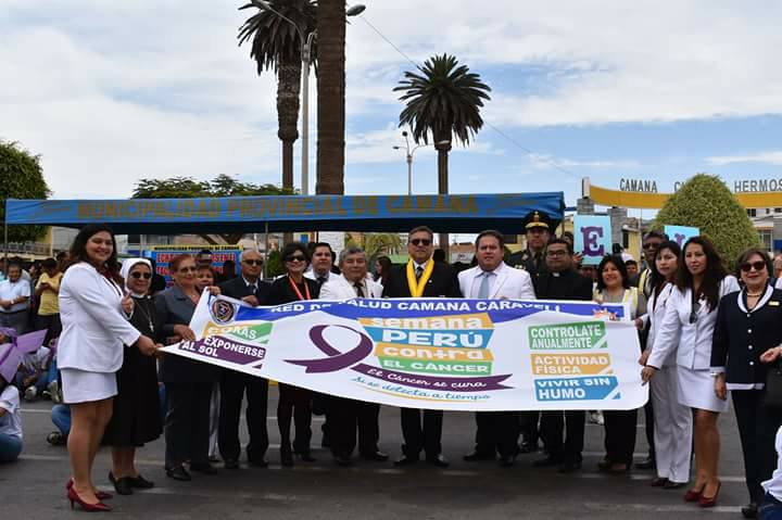 El Dr. Ricardo Néstor Ruiz Rojas, Director Ejecutivo de la Red de Salud Camaná Caravelí, en coordinación con el Hospital de Camaná y la Estrategia de Prevención y Control de Cáncer, realizó diversas actividades públicas descentralizadas de caracter educativo, cultural, preventivo y promocional por la SEMANA PERÚ CONTRA EL CÁNCER 2018, con el Lema "El cáncer se previene y se cura si se detecta a tiempo".