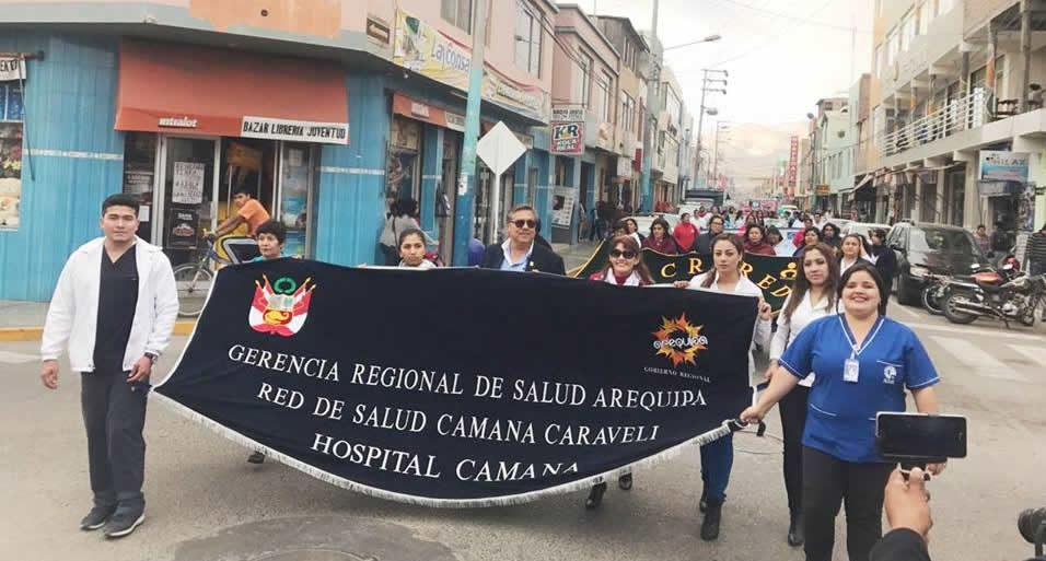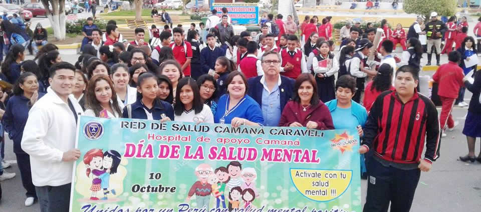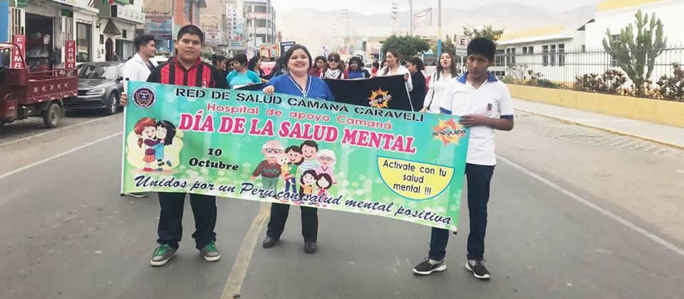 Por Conmemorarse el Día Mundial de la Salud este 10 de octubre, la Red de Salud Camaná Caravelí y el Hospital Camaná organizo una marcha de sensibilizacion con el propósito de crear un mayor conocimiento sobre la importancia de la salud mental en todos los grupos etarios, y su repercusión en el desenvolvimiento global de las personas. Dicha actividad se realizo por las principales avenidas de nuestra Localidad denominada: "Unidos por un Perú con una salud mental positiva", en donde participaron diferentes Autoridades e Instituciones de Nuestra Localidad con lemas alusivos a la fecha festiva tales como la I.E. Cristo Rey, I.E. Sebastian Barranca, I.E. Ángel de la Guarda, I.E Faustino B. Franco, I.E. Nuestra Señora de la Candelaria así mismo se contó con la presencia de el Alcalde Provincial, el Centro de Emergencia Mujer, Demuna Provincial, Demuna de la Municipalidad Distrital de Samuel Pastor, Demuna de la Municipalidad Distrital de Nicolas de Pierola, entre otras Instituciones. "Todos unidos por un Camaná con una salud mental saludable, porque salud mental si que importa".