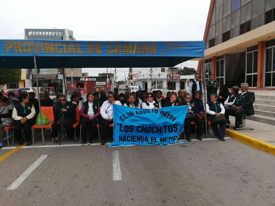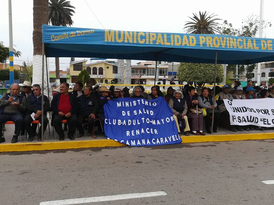 CLUB DEL ADULTO MAYOR DE LA PROVINCIA DE CAMANÁ, PRESENTES EN EL AGASAJO POR EL "DÍA NACIONAL DEL ADULTO MAYOR" REALIZADO POR LA RES DE SALUD CAMANÁ CARAVELÍ EN COORDINACIÓN CON LA MUNICIPALIDAD PROVINCIAL DE CAMANÁ.