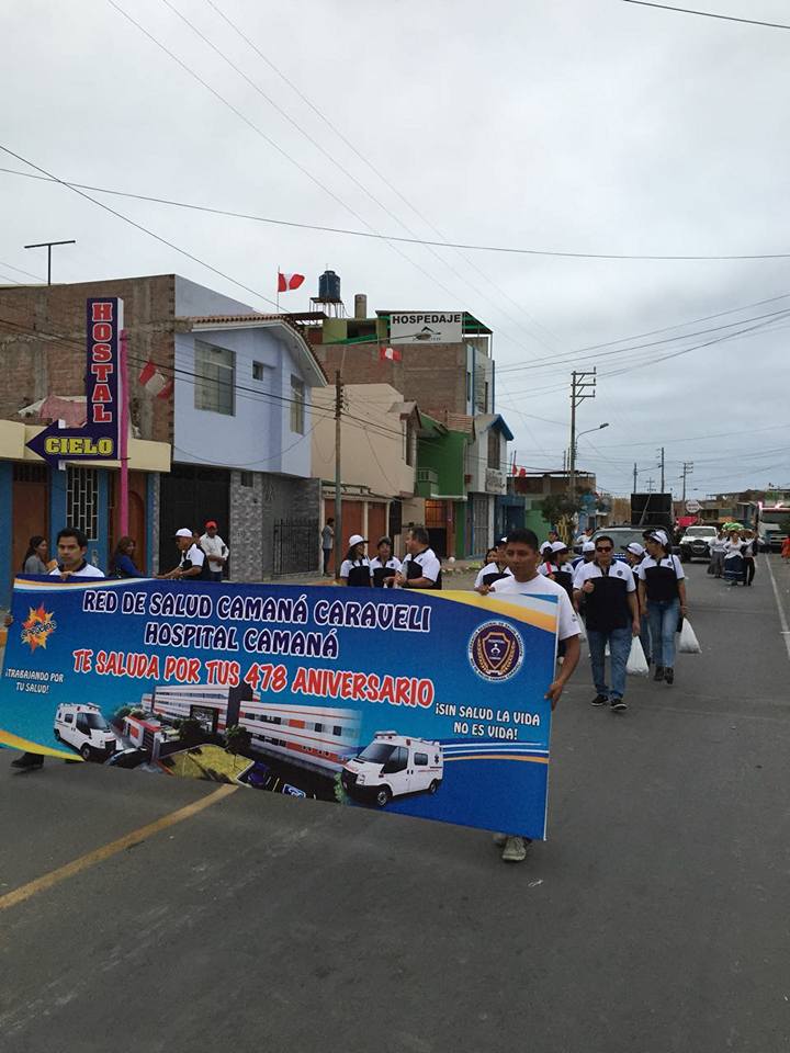 La Red de Salud Camaná Caravelí y Hospital Camaná Participaron en el Desfile Civico Patriotico por Conmemorarse el 479 Aniversario de Nuestra Provincia de Camaná, con la Participacion del Dr. Ricardo Ruiz Rojas Director Ejecutivo de la Red de Salud Camaná Caravelí, Dr. José Antonio Llamosas Ampuero Director del Hospital Camaná y Trabajadores en General.