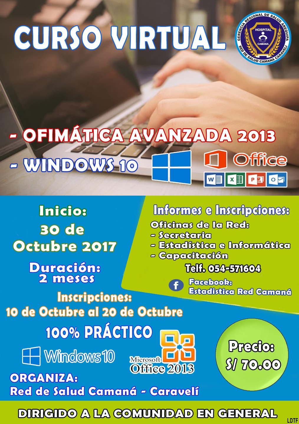 Informes e Inscripciones: Oficinas de la Red de Salud Camaná Caravelí - Secretaria - Estadística e Informática - Capacitación Inscribete YA !