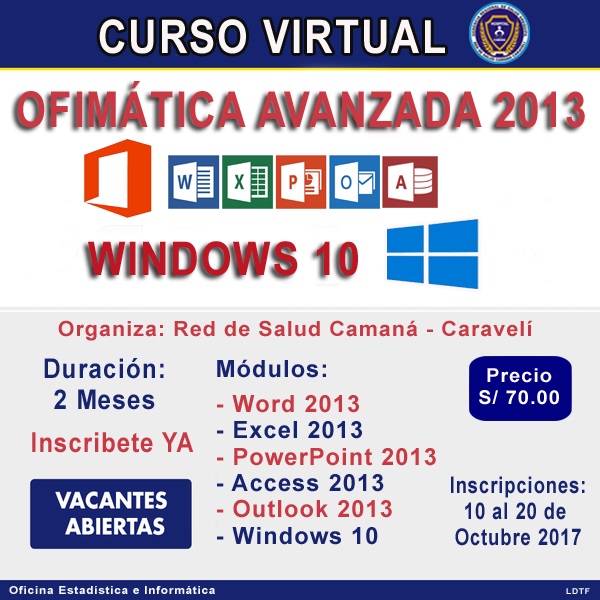 Curso Virtual 2017 Ofimática Avanzada 2013 y Windows 10
