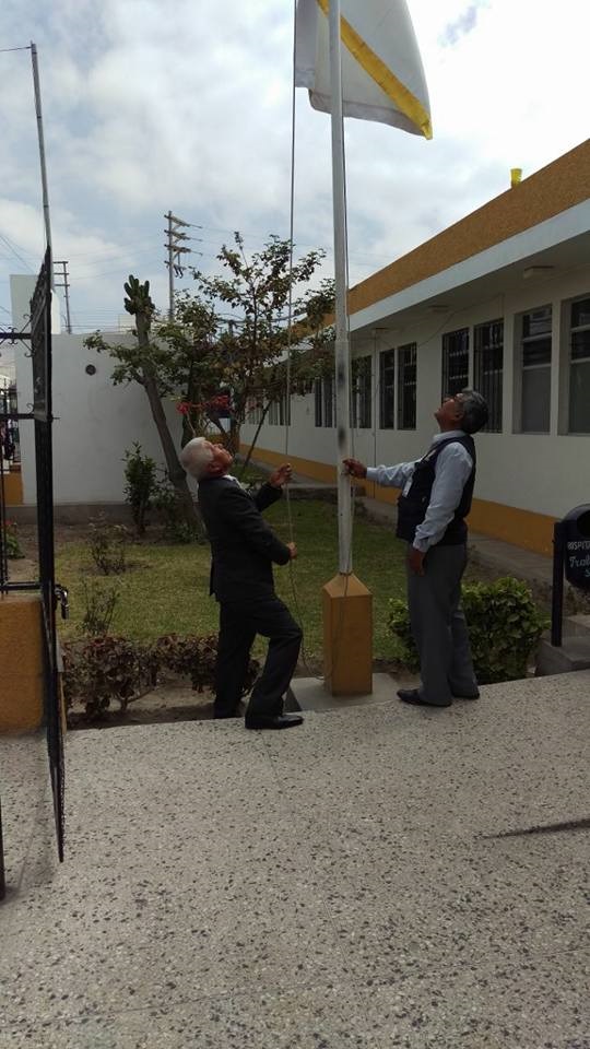 El Dr. Ricardo Ruiz Rojas Director Ejecutivo de la Red de Salud Camaná - Caravelí, Dr. José Antonio Llamosas Ampuero Director del Hospital Camaná, Autoridades invitadas, y Trabajodores en General participan en el Izamiento del Pabellón Nacional y Bandera de Camaná por Conmemorarse el LXIV ANIVERSARIO DE NUESTRO HOSPITAL CAMANÁ.