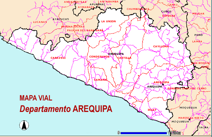 Límite departamental: 	 	Ica, Ayacucho, Apurimac, Cusco,