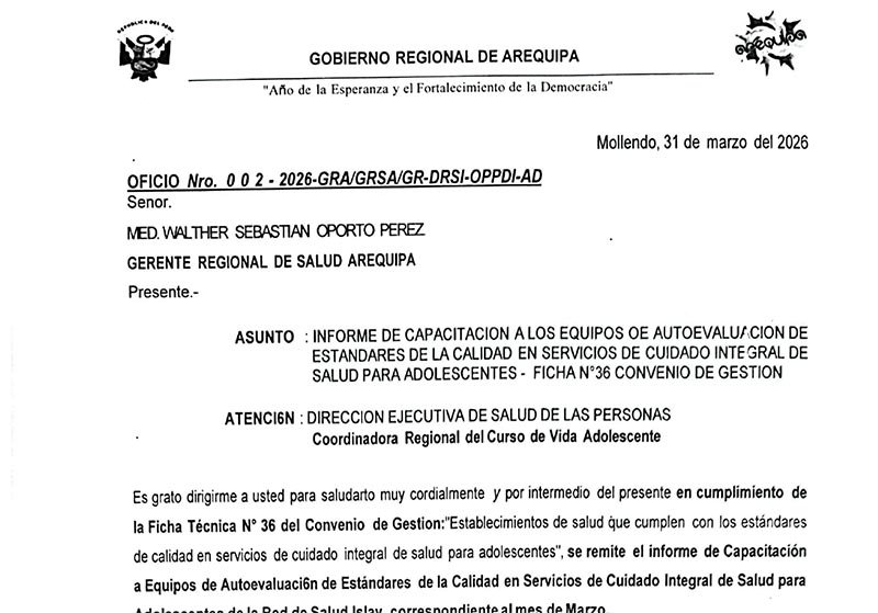 31/03/2026 – INFORME DE CAPACITACIÓN A LOS EQUIPOS DE AUTOEVALUACIÓN DE ESTÁNDARES DE LA CALIDAD EN SERVICIOS DE CUIDADO INTEGRAL PARA ADOLESCENTES – FICHA N°36 CONVENIO DE GESTIÓN